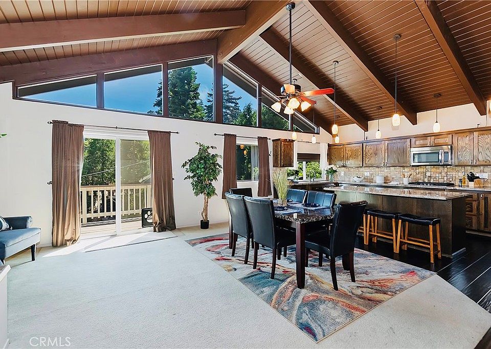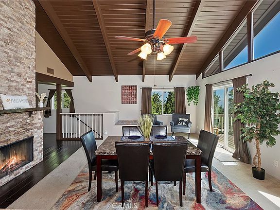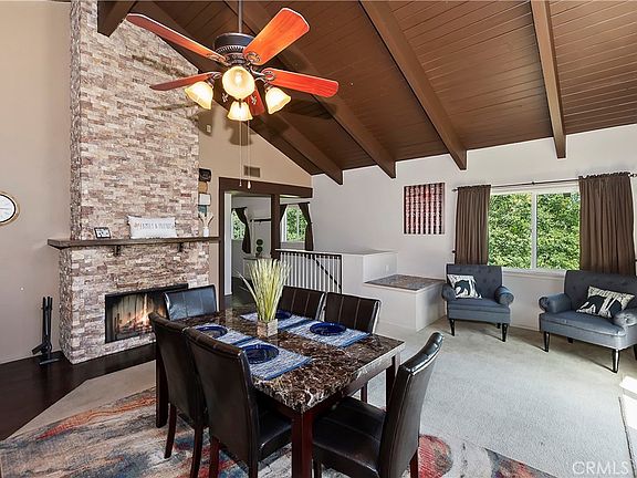Gorgeous mountain retreat with private hot tub. Nestled above the clouds among tall pines you'll find the perfect getaway! Fully furnished 3-bedroom, 2 full bath extra clean mountain chalet meets mid century modern home. Open concept and large located on a peaceful low traffic county maintained road. Level parking for two or three cars and just two steps to your front door! Greeted with a strong stylish door enter the spacious foyer kick off your shoes and hang your coat. Then enter the great room with lots of natural light with forest views at every turn. Equipped with dual pane windows for energy efficiency. You'll immediately notice how grand it feels with high cathedral ceilings. Beautiful stack stone fireplace in the dining area and a dream chef's kitchen upgraded with stainless steel appliances, large center island, and granite counter tops. Head outside for some fresh air and enjoy distant city views on a clear day from your private deck off the living room. Ready to use BBQ grill included. The main level also features an oversized bedroom with three walk in closets and full bathroom next to it. Downstairs to the 2nd floor are two spacious bedrooms, full bathroom and dedicated laundry area with extra storage. This floor is full of fun. Family room with TV and floor to ceiling and wall to wall brick fireplace! Great for cozy nights. Plus, a pool table that doubles as a ping pong table, and an arcade game sure to please with hours of fun! The door on this floor will take you to your private hot tub where time flies and your body will thank you with relaxing bubbles. There is something for everyone at this wonderful retreat. A home away from home Rimforest is a just a few minutes from the shops and dining in the Lake Arrowhead Village area. Only an hour commute from Los Angeles, this area has quickly become the most popular area in the San Bernardino mountains where the living is easy. This home has been a successful Airbnb booked every weekend if you're looking for extra income while you’re away. Comes with the lot next to it for extra wide elbow room or build a fort for the kids. Central heating and two gas log fireplaces sure to keep you warm on any chilly night. Don't miss the wonderful extra space on the lower level. Come for a visit come for a lifetime.