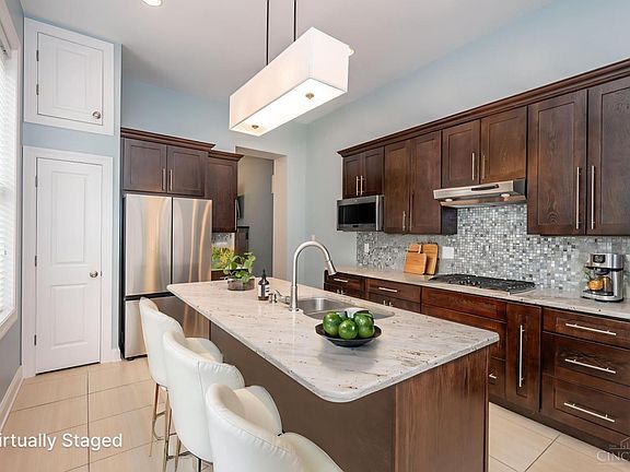Stunning 3-story Victorian close to UC, University Hospital, and Cincinnati Children's! This fully remodeled 4BD, 3.5BA home blends historic charm with modern luxury soaring ceilings, wide staircase w/rod-iron railings, hardwood floors, built-ins & a stone gas fireplace. Gourmet kitchen features 42" cabinets, Bosch dishwasher, granite countertops and tile backsplash, island, gas stove, double oven & walk-out to a private wooded backyard. Primary suite offers jetted tub, oversized shower, walk-in closet & laundry chute. All baths updated with granite vanities & tile. Third Bedroom boasts 2 closets & window bench with storage. Third floor has its own heating and cooling system. Enjoy a spacious front porch, off-street parking, new roof, newer windows & geothermal HVAC. Cable and ethernet wired throughout, surround sound, & security system complete the package! Located near Hauck Botanic Garden w/walking trails, green roofs, & the civic garden center.