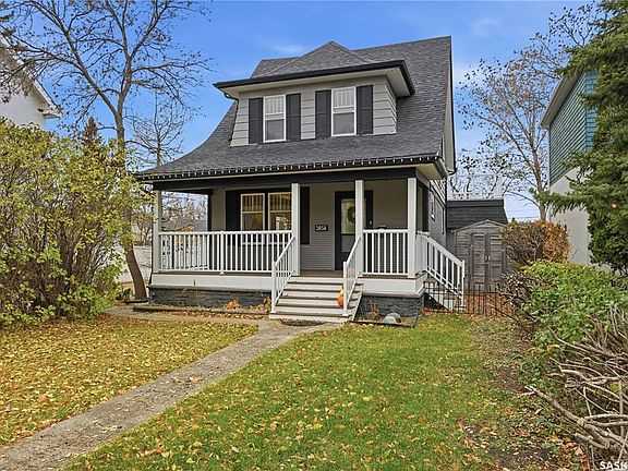 Welcome to 1340 sq ft of character and charm in one of Regina’s most coveted neighborhoods — the Crescents. From the moment you arrive, you’re greeted by a cozy front verandah that perfectly sets the tone for what’s inside. Step through the door into a spacious foyer that leads into the bright, open-concept living and dining area — ideal for entertaining or relaxing, with plenty of natural light and newer hardwood flooring throughout. The beautifully updated kitchen continues the hardwood theme and features navy cabinetry, quartz countertops, and gleaming stainless-steel appliances. At the back of the home, you’ll find a convenient mudroom connecting to the 19 × 21 double attached garage — a rare find in this area. Upstairs offers three comfortable bedrooms and a stylishly updated 4-piece bath complete with an oversized jet tub. Step out onto the large west-facing balcony with epoxy flooring — the perfect spot to unwind and take in those beautiful southern Saskatchewan sunsets. The lower level, updated in 2014, extends your living space with a cozy rec room, a 2-piece bath, and a combined utility/laundry/storage area. Notable highlights include a newer foundation (approx. 1965), high-efficient furnace, central A/C, back-flow valve and underground sprinklers. Out back, you’ll enjoy a private, fenced green space surrounded by mature shrubbery. Don’t miss your chance to call this character-filled Crescents home your own!