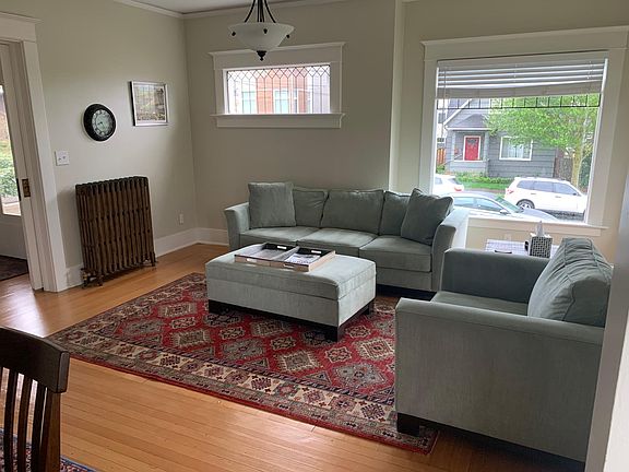 midterm Rental, Available October 1st. Please state your dates w/ minimum 30 days and we will quote you the rate for longer stays. Wonderful quiet part of Ballard yet walkable to so much. This is a lovely, historic 1909 restored Craftsman home with high ceilings, wood floors, fully remodeled in 2015. Listed in Ballard Historical Society's Vintage 500 significant homes. Main floor has large kitchen with island, stainless appliances, dual fuel range (gas cooktop, electric oven), honed granite counters and cork floors, Dining room, Living room with tv, full tile bath, and one bedroom. Kitchen includes dishes, pots/pans and utensils. Upstairs has four bedrooms, clothes washer/dryer and another full bathroom.