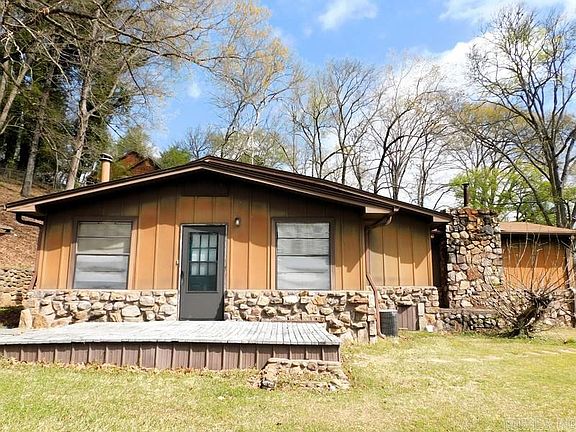 One level frame with rock/siding cottage style home on Lake Catherine. Home features 2 bedrooms, 2 full bathrooms, fireplace, central air, central heat, open porch, wood deck, driveway parking and detached 2 car covered parking, two storage buildings and a beautiful view of Lake Catherine on a level shoreline. HUD Case #031-427331, FHA Financing: In (Insured) Property is sold in as-is condition, no warranties, guarantees or representations.