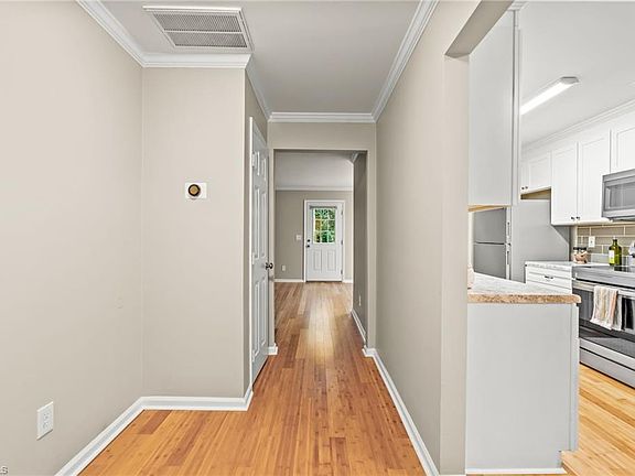 Two story townhome in convenient Windy Crossing with rare unfinished basement! Features include: New bamboo flooring throughout (2024), Eat in kitchen with stainless appliances, Heat pump (2021), Replacement windows, gas log fireplace, Primary bedroom with walk in closet and remodeled bathroom, 2nd en suite bedroom, remodeled half bath, basement walk out, neutral paint throughout, freshly stained deck, neighborhood pool, covered front porch, and 2 designated parking spots. See Agent Only