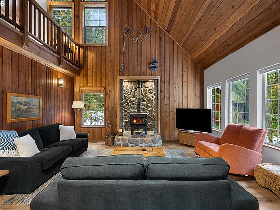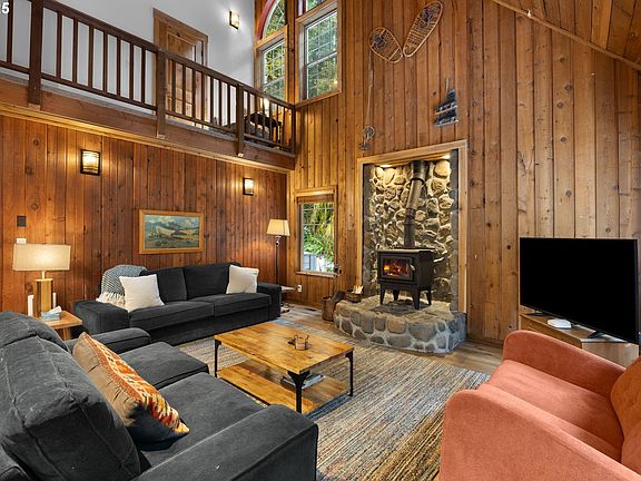 Henry Creek Cabin is on the market! Looking for a private half acre location with an updated three bedroom, two bath cabin style home in Rhododendron? This well known STR is a stunner with high vaulted wood ceilings and tons of windows that flood natural light throughout the living area. The great room features a completely open floor plan with living room, kitchen and dining area. The seller added many recent updates including lighting, all new appliances, updated kitchen and bathrooms. Enjoy the toe warming wood stove after a day on the slopes. The primary bedroom is on the main level. The bedrooms upstairs have vaulted wood ceilings. I love the wrap around deck. There’s a side deck steps away complete with a covered hot tub which is a “must have” on Mt. Hood. It comes completely furnished except for a few exclusions. Just down the street is the Mt. Hood National Forest with hiking trails. It’s an easy walk to downtown Rhododendron which has coffee shops and restaurants. Mountain biking trails empty nearby so riders will enjoy this location. Skiing is only 15 minutes away. It’s premium spot for recreating on the mountain! It’s really difficult to find a secluded getaway tucked away like this one. Bonus: it’s on a plowed road for winter time access. Only one hour from Portland to your retreat in the woods.