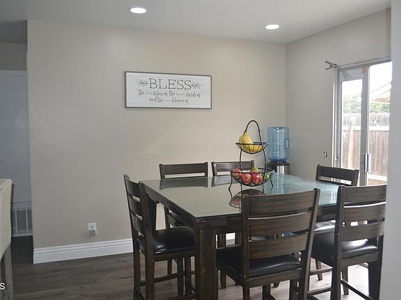 This single-family home has one attached wall. Enter into a living room that's large enough to host your guests in front of the fireplace. The next room is the dining room - great size to have dinner with extra room at the counter. From the dining room you have access to the backyard Bar-B-Q or the kitchen with granite counters. The recessed lighting in the living room, dining room, kitchen and hallway gives you lots of light. With 3 bedrooms and two baths, this home has plenty of space to be comfortable. Some of the smooth walls have been painted in neutral colors with laminate flooring in most of the house. The 3 bedrooms have carpeted flooring with a ceiling fan in one bedroom. The backyard has ample room for gatherings. There is a 2-car garage and a driveway for 2 more cars. This home is conveniently located to a park, restaurants, the Port Hueneme base, and Pacific Coast Highway.