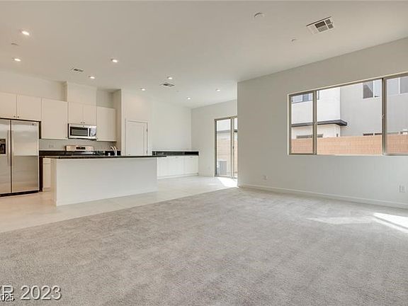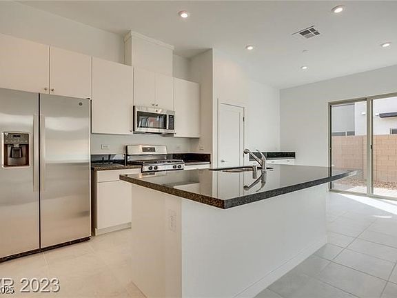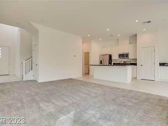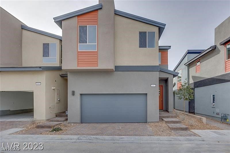 Gorgeous 2-story townhouse, 3-bedroom, 2.5 bath, 2-car garage located in a desirable Inspirada master-planned community with abundant amenities. Featuring front paver, vaulted ceiling, open floor plan, tile flooring, granite countertops, white cabinets, kitchen island, SS appliances, window treatment throughout, tankless water heater, fully finished garage with epoxy floor. The upper level has the spacious primary bedroom with plush carpet, situated away from the other two bedrooms, has pristine private bathroom with dual sinks and sizeable walk-in closet. A 220V outlet in the garage for your electric car charging, paver patio in the backyard. Located nearby shopping, dining, freeway, M Resort and LV Raiders training facility. Small dogs allowed.