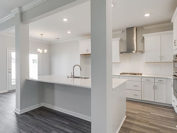 The Victor is a superb two-story home with five bedrooms and three-and-one-half-bathrooms. The main primary suite is on the first floor. This beautiful home also has a bonus room, a formal dining room, a covered back porch with a fan, and an extended patio. The main level is lined with luxury vinyl plank flooring and a stained open tread staircase with metal spindles. The dining room has a coffered ceiling and a nine-light chandelier. The gourmet kitchen features a gas range, double wall oven and microwave, quartz countertops, a large sink, upgraded white cabinets, and an eat-in island. The large kitchen island overlooks the great room with a gas fireplace, crown molding, and a ceiling fan. The first-floor primary bedroom features a box ceiling, a large walk-in closet, a quartz countertop and double sinks, a separate soaking tub, and a shower with beautifully tiled walls. You'll also have four additional bedrooms and a large bonus room upstairs. This home comes with full yard irrigation and a tankless hot water heater. This Victor plan has many upgrades and a great layout! Resort-style community amenities include an amazingly gorgeous pool, lazy river, clubhouse, playground, and dog run! Come home to Bluefield and make this one yours today!