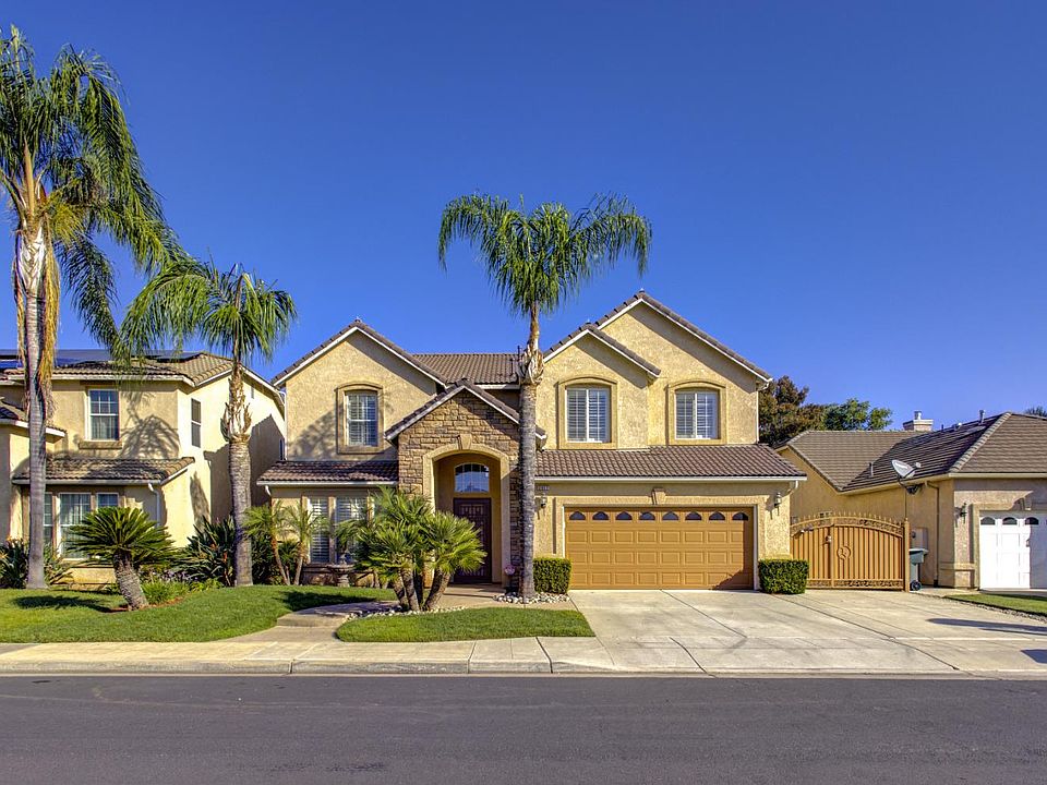 Built in 2002, this 4-bedroom, 3-bathroom, 2,687 sqft home on a beautifully landscaped 6,000 sqft lot is meticulously maintained, perfectly combining spacious family living with thoughtful upgrades, all within close proximity to the best of Clovis. The home features an elegant living room plus dining room, a family room flooding with natural light, a loft area, and an isolated downstairs bedroom with ensuite bath, offering flexibility for guests or multigenerational living. The downstairs and main areas showcase hard surface flooring with carpet upstairs; plantation shutters throughout; brand new kitchen appliances (stove, oven, dishwasher, microwave), and ample storage throughout. The kitchen is spacious with plenty of cabinets, an eat-in kitchen, breakfast bar, built in desk, and a spacious pantry. Step outside to a beautifully landscaped backyard with a pool and spa, a large covered patio, and a generous side yard ideal for parking the large toys. Security is a priority with a security gate and security doors on all exterior doors. Ideally located, this home is close to new restaurants, shopping, parks, and sits within the award-winning Clovis Unified School District, offering both convenience and quality education. A perfect blend of comfort, style, and functionality in a prime Clovis location.