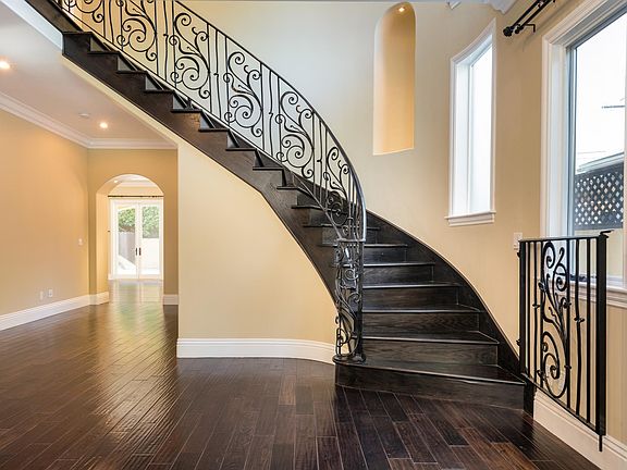 Detailed Spanish architecture and fine finishings give this home a look that is only exceeded by the sumptuous interior. Wonderful floor plan with living room, formal dining, spacious family room and kitchen and large bedroom with full bath all on first floor. Huge gourmet kitchen features custom cabinetry and stainless-steel appliances. Four bedrooms and three full baths upstairs. Oversized owner's suite features private balcony and colossal walk-in closet. Every bathroom a masterpiece of stonework-not just the gorgeous owner's bath! Rich, dark hardwood flooring throughout the home accents the light and bright atmosphere created by many windows and luxuriously high ceilings. All amenities: Dual zone heat and AC, Tankless water heater, Crown molding and recessed lighting in every room. Great backyard for kids and entertaining.