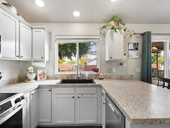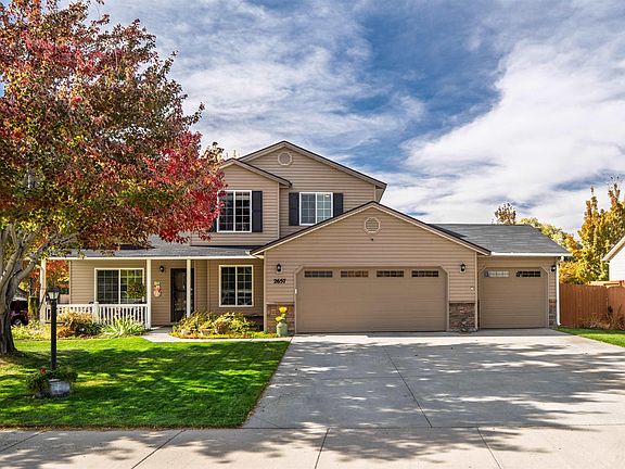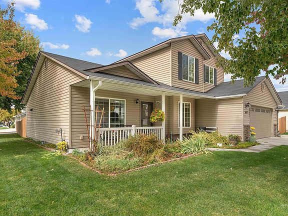 TURN KEY Ready. Beautiful, light and bright 4-bedroom, 2.5-bath home on a spacious .27-acre corner lot. Features a 3-car garage and a separate RV gate with 45' concrete pad-perfect for storing your extra toys or trailer. Enjoy the outdoor living with an extended patio deck, hot tub, fire pit, and mature trees providing privacy and shade. Additional shed included with roll up door for extra storage. Plenty of room to relax, entertain, and enjoy this well-maintained property. New Furnace, HVAC, new refrigerator, microwave, stove 2025, dishwasher 2024, washer and dryer 2020. All appliances, garage shelves, TV in Primary, shed, hot tub, and fire pit included. This home has it all!