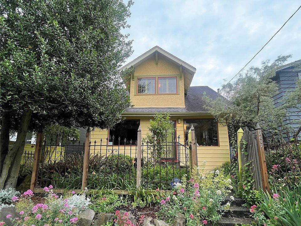 Beautiful authentic Ballard farmhouse w/amazing landscaped greenery, detached studio for supplement income! Plenty of space in large living room, hardwood floors, high ceilings, dining room & large kitchen. French doors in MF bedroom w/private balcony overlooking the yard & patio entertainment area. 2 bedrooms upstairs, brand new luxurious bath w/separate clawfoot tub + shower, double skylights, towel warmer, & additional closet space. Room to expand into unfinished basement. DADU BONUS: Perfect bungalow detached studio for income, (290 SQFT) in back w/bath, kitchenette, built-in-bed. Great yard w/patio for entertainment, gardening, & relaxation. Just blocks from the must-haves! Golden Gardens, Ballard Locks, 7.5 miles to downtown Seattle!