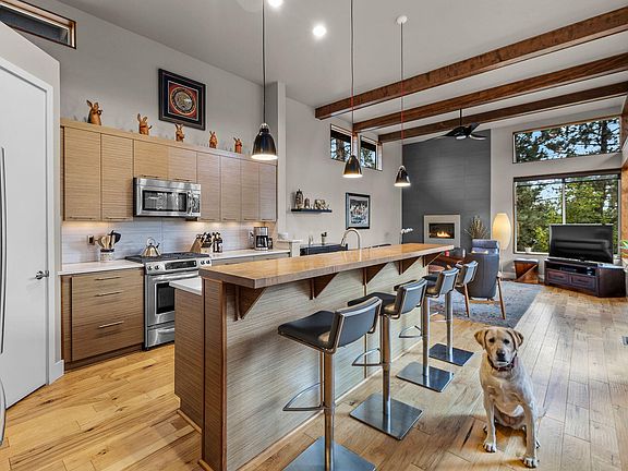 This stunning Mid-Century inspired modern home offers main-level living at its finest - perfect for everyday comfort and effortless entertaining. Designed with an open, flowing layout, it features expansive picturesque windows that flood the space with natural light. 12 foot ceilings! A true entertainer's dream, the spacious living areas and decks invite gatherings both large and small. With 4 generously sized bedrooms, including a primary suite on the main level and 3 on the lower level, 2 1/2 stylish bathrooms, a main level office with built-in wrap around desks and a laundry/mudroom that's truly a standout, every detail has been thoughtfully crafted. Tucked away in a quiet, well-cared-for neighborhood, this home combines tranquility with timeless sophistication. Two car garage, HUGE lower level gear room and bike/ski shop area. Fenced area off the lower level with raised garden beds on the south side. HOT TUB. Riding distance to trails/NWX/schools. 2 blocks to Quail Park.