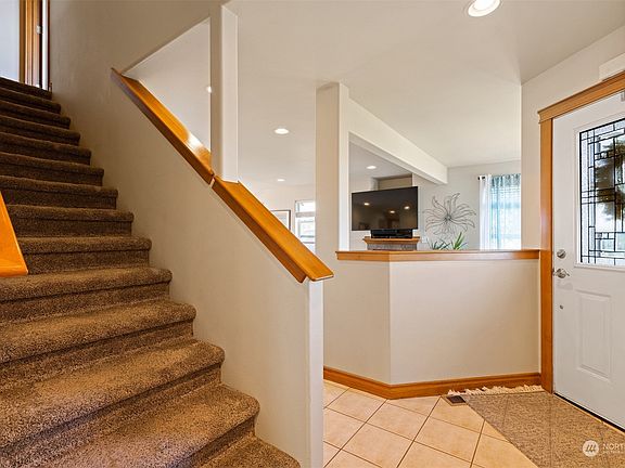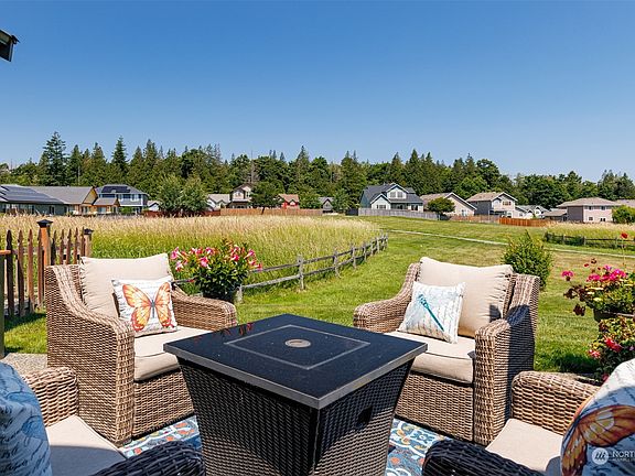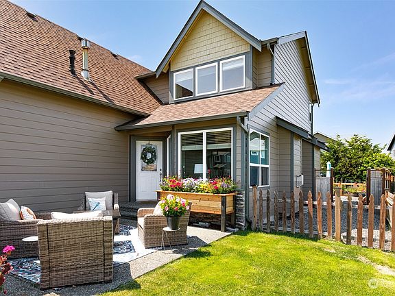 This home is situated adjacent to open space in the development looking out to a park and playground with majestic Mt Baker beyond. It's a wonderful community and there's even a pickleball court! Sellers have loved this home and it shows inside and out! So many updates including 1 yr old carpet, 2 yr old Trex deck, fresh exterior paint, new 30 year roof...and everywhere in between. Gas firepit and BBQ included. Floorplan is spacious and open and there's a bonus room that accommodates a pool table above the garage. The new back deck and surrounding yard is private and has raised beds for gardens and separate fenced areas. There's also a front patio to take in the majestic Mt. Baker views, sunrises and watched what is happening at the park.