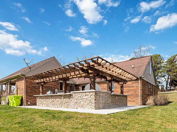 Outdoor areas feature a large kitchen, surrounded with stereo speakers, stamped/stained concrete area for hosting events/parties/family gatherings.