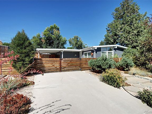 Timeless, Cliff May-Esque mid-century character meets modern style in this stunning 3-bedroom, 2 bathroom beauty in desirable Harvey Park. The vibrant entryway and lush landscaping, welcome you to an open, seamlessly flowing interior. Vaulted ceilings and floor to ceiling windows create a sunlit filled living space ideal for entertaining and relaxation. The newly renovated kitchen shines with upscale finishes, quartz countertops, a 7 foot island and breakfast bar, along with generous storage and preparation spaces. Also featuring 3 sizable bedrooms, including a primary suite with space for a king size bed, ample closet space with built in shelving systems and a spa-like en-suite with a walk in shower and dual vanity. The finished lower level adds flexible space for a guest retreat, office, or media room. Step outside to your private backyard oasis, complete with mature and manicured landscaping, multiple patio areas, a planter box, hot tub and plenty of space to relax. Added conveniences include fully owned solar panels (with a transferable warranty), a newer roof, 2 outdoor sheds, an fully irrigated yard, and double carport. With connectivity to downtown Denver, Ruby Hill Park, Hwy 285 and the mountains, this home seamlessly blends mid century modern charm, modern aesthetics and easy access to Denver and the front range. Don't miss this one!