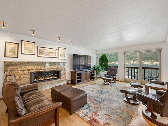 This Beautifully Remodeled Gastineau Villa Condo is a Rare Opportunity That You Definitely Don't Want to Miss! The incredible views of the water, mountains and downtown Juneau make for a truly wonderful spot to call home. This 3 bedroom, 3.5 bath condominium underwent an extensive renovation touching every inch of the interior, resulting in a stunning high quality home with high end finishes, top notch craftsmanship, smart design choices and an attention to detail that truly is quite impressive! Walking into the main living area you’re greeted with wall to wall windows, a beautiful gas fireplace surrounded by granite, and white oak hardwood flooring. All of this and tall ceilings create a beautiful warm and inviting space that you will love to come home to. The kitchen features granite countertops, soft close cabinetry that also provides ample storage and functionality, along with SubZero, Wolf and Miele stainless steel appliances, and many other features makes for an exceptional gourmet kitchen. There's more than enough room to gather around the kitchen island and the dining room table making it ideal for hosting friends and family, but also perfect for your everyday needs. The spacious master bedroom truly is an oasis, with stunning views from every window, and an ensuite bathroom with a double vanity, Kohler fixtures and granite counter tops, in floor heating and best of all a steam shower. There’s a custom office space, built-ins and a full size washer and dryer conveniently located in a large closet. The guest bedroom has the added luxury of a full size en suite bathroom with in floor heating. Downstairs on the lower level is a large bonus area that includes the 3rd bedroom with an ensuite bathroom and its own full size washer and dryer. Off of the living room there's a private deck, where you can take in the views and fresh air. A covered patio greets you near the front door creating a lovely place to sit and enjoy the outdoors. Adding to its many charms, there is a private garden and on the practical side there is a heated garage and EV charger option. We are happy to provide a list of the remodel work upon request! This is a very special property, don't hesitate to schedule a showing.