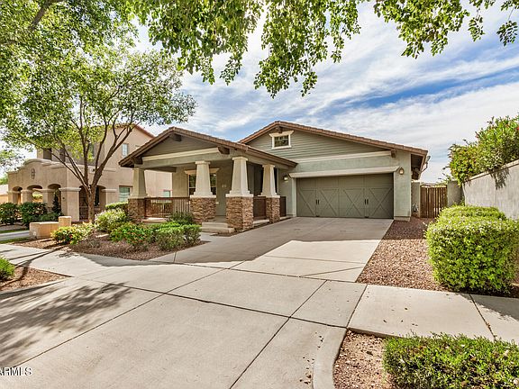 Welcome home! Located in the desirable Verrado, this beautiful residence is waiting for you. Offering 3 beds, 2 baths, a 2-car garage, and a delightful front yard w/vibrant landscape, stone facade, & relaxing porch. The inviting interior showcases an open floor plan w/backyard access. The kitchen boasts built-in appliances, recessed lighting, ample cabinetry, granite counters, pantry, and a center island. Enter the primary bedroom to find a soft carpet & ensuite w/separate tub and shower, & a walk-in closet. The spacious backyard is the ideal place to relax; discover the covered patio, the stone flooring, Ramada, an inviting fire pit, & storage shed. Don't miss this gem!