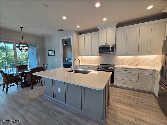 BRAND NEW! ANNUAL LEASE Stunning 2nd floor Windermere model in Seychelles. Seychelles is a small intimate community of island inspired architecture in a tropical setting. This 2 Bedroom + Den/Office and 1 car private garage, offers a beautiful open floorplan with large kitchen island, quartz counter tops, tile floors and lots of natural light. Enjoy quiet time on the screened balcony. The primary bath features dual sinks, walk in shower and large closet. Resort Style Community amenities feature heated pool, hot-tub, fire-pit area, lots of outdoor seating, community room , and fitness center. Close to downtown Naples, and Beaches. Tons of new restaurants, and shopping being built for convenience. Furnished for convenience, but can be leased unfurnished.