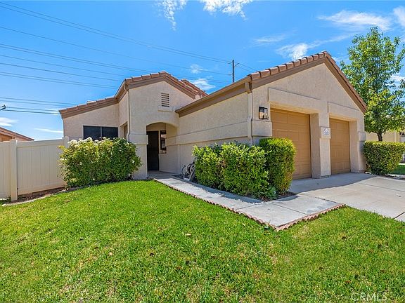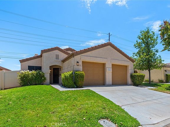 Welcome to this charming home in the beautiful Casa Murrieta 55+ community in Menifee! This home features 2 bedrooms, 2 bathrooms, vinyl flooring throughout the entire home, exterior paint completed in April 2025, all windows professionally washed inside and out and all windows have new screens, with a solar screen on the kitchen window. The AC unit is 7 years old, with a new motor/compressor replacement in 2024. Enjoy a cup of coffee in the front courtyard or a peaceful evening in the nicely landscaped backyard under one of two patio covers. The backyard offers multiple fruit trees, such as, apple, tangerine, peach and blood orange. This adorable home and community has so much to offer! It is well maintained and move in ready, or ready for you to update to your liking. Casa Murrieta HOA offers a beautifully maintained community, gated pool and jacuzzi, and front yard grass maintenance. Don't miss out on this wonderful 55+ home and community!