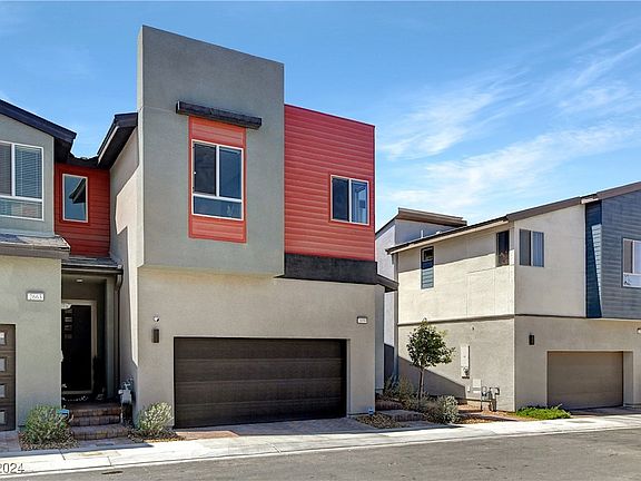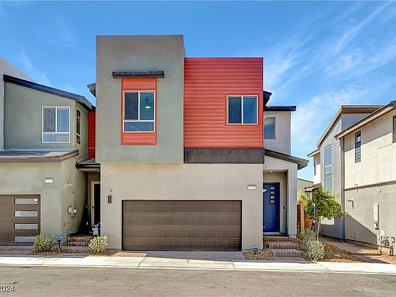 Experience modern luxury in this 3 bed, 2.5 bath townhome in the connected community of Inspirada. Lives like a SFR with a spacious 2 car garage with EV charger & landscaped backyard. Be impressed by a dramatic 20ft entry, abundant windows, and 10ft ceilings downstairs, creating a bright and airy atmosphere. Beautiful Bianco Levanto quartz countertops, island and backsplash with bold veins. The sleek “CaféTM” appliances complement the modern design, while the matte black hardware adds a touch of sophistication. Notice details such as the unique Santa Fe wall texture, modern doors, 5-inch baseboards, matte black hardware & plumbing fixtures. Reveal with light-filtering shades from "The Shade Store" throughout. Elevated black metal stair railing for modern aesthetic. Spacious primary suite encompasses motorized shades providing picturesque mountain views, complemented by dual sinks, a tub shower combo, and an expansive walk-in closet. Welcome to a lifestyle of sophistication and comfort.