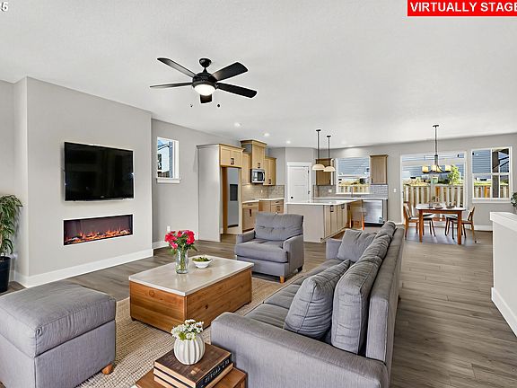 MOVE IN READY!Start your tour at the host home at 744 NE Trillium Dr, to view available homes in Dugan Estates! DUGAN ESTATES IS OPEN WEDNESDAYS THROUGH SUNDAYS 1 TO 4! SPECIAL INCENTIVES WITH PREFERRED LENDER. The Ramona ADU plan offers the perfect blend of spacious living and added privacy with a separate ADU! The main home includes 3 bedrooms and 2 bathrooms highlighted by a vaulted primary suite with a walk-in closet, double sinks and shower. The gourmet kitchen boasts sleek slab countertops, Energy Star Whirlpool stainless steel appliances, a large island, laminate flooring and a pantry all open to a generous great room and dining area—ideal for entertaining. The attached ADU provides its own private entry, 1 bedroom, 1 bathroom, and a cozy kitchen and living combo perfect for guests or rental potential. The property is fully landscaped in both the front and back yards completing this exceptional home. Dugan Estates homes are Stop in to see this fantastic property in person! Washers, Dryers and Refrigerators are not included.