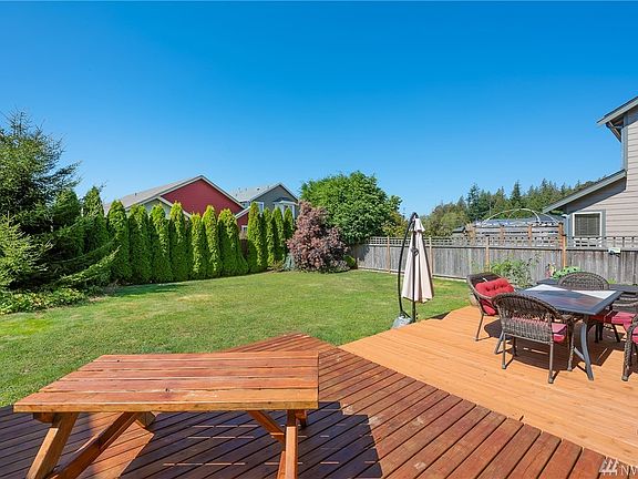Welcome to this spacious & well-appointed true 4BR, 2.5BA home with Mt. Baker views. Enjoy two living spaces, a dining room, kitchen with breakfast bar and large fully-fenced yard facing west for maximum sun with entertainers deck! Huge Master BR with en suite bath and large windows. All bedrooms upstairs are large with lots of storage space. This home has a great layout and you will not be disappointed. Located on a quiet cul-de-sac just steps from a playground, tennis courts, and picnic area.