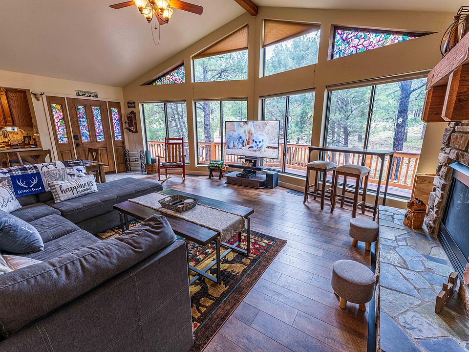Welcome to your dream home in the mountains-a meticulously maintained single-family cabin that effortlessly harmonizes luxury and comfort. Set on nearly an acre in a prestigious fire-wise community, this property offers a rare blend of privacy and connection, surrounded by mature Ponderosa pines and the natural beauty of northern Arizona.