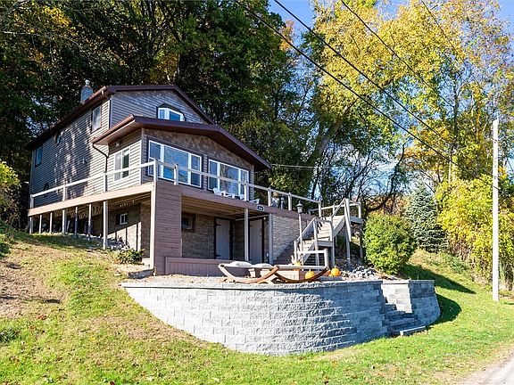 Check out this SPECTACULAR waterfront home with million dollar views! Located on a PRIVATE DRIVE! Go fishing right off the dock and take your boat out for a spin. Entertainers dream with a full HUGE deck, screened in covered porch, outdoor grilling area, hot tub and stone patio! Updated kitchen cabinets, quartz counters and pergo flooring throughout the first floor. Breathtaking views right off the master bedroom! EVERYTHING has been updated within the past 10 years including septic tank, siding, roof and electric. This is a must see! Delayed negotiations until Monday 11/3 at 11am. OPEN HOUSE SATURDAY 1-3pm