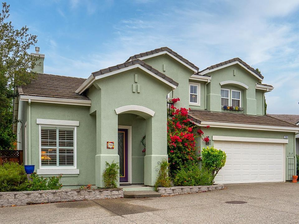 A serene Victoria neighborhood setting is the scene for this wonderfully spacious home. Set at the back of the cul-de-sac with plenty of guest parking is a covered entry with a strikingly tall door. Just inside, elegant flooring runs throughout where you'll find the spacious living room with dining area, tall plantation shutter windows, and half bath with under-stair storage. Continue through the threshold with ornate wood feature to the family room with fireplace and more great natural light. The area is open to the kitchen with plenty of counterspace, bartop seating, pantry, dining area, granite countertops, and back door slider. The convenient 1st floor primary suite enjoys plenty of space, oversized windows, walk-in shower, tub, double-sink vanity, and walk-in closet. Upstairs holds four wonderful guest rooms with large, mirrored closets, a full bath with double-sink vanity and tiled shower, and the laundry room with incredible closet space. A private backyard enjoys newer fences, a side yard with raised garden bed, sitting areas, and gate access. It's all moments from the incredible Helen Putnam Regional Park, neighborhood sports courts, and easy downtown access!