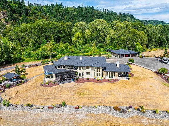 Stunning waterfront estate offers an unparalleled lifestyle, with 16 acres of privacy surrounded by water on three sides. Over 1,000 feet of sandy Columbia River beach and breathtaking views from nearly every room in the 7,280 sq ft home. Picturesque boardwalk leads to the 80-ft long boat dock, ideal for water adventures. Completely remodeled open kitchen is a chef’s dream with 3 ovens, quartz counters, and so much more. River front gazebo is perfect for hosting large gatherings with a full kitchen and the option to enclose-complete with playground, gas fire pit and more. 4 bedrooms, office, 2 versatile flex rooms and 5 bathrooms. Primary suite is an oasis of comfort you'll never want to leave. Garage parking for at least 10 cars and an RV.