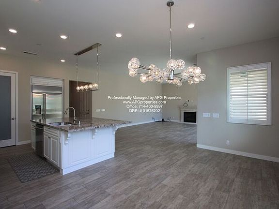 Stunning 4 Bedroom 3 Bathroom Home in the Great Park Neighborhood of Irvine APG Properties (DRE #01525202) This home is available, but public open house showings are paused due to current health concerns and local guidelines. Copy this link to your browser to schedule a private showing at your convenience. Single Story home with direct access to 2 car garage High ceilings and recessed lighting in all rooms Open living area featuring fireplace and floor to ceiling sliding glass doors Impeccable kitchen is accented by a large island, exquisite lighting fixtures, and granite counters Full suite of GE Monogram Series stainless steel appliances including 6 burner stove, double oven, range, dishwasher, & refrigerator Walk in Pantry and custom cabinetry offer vast storage options Generous size bedrooms with wood shutters and ceiling fans Private master suite is highlighted by a large walk in closet, dual vanities, and an expansive tiled shower Elegantly appointed bathrooms Full size laundry room with sink and extra cabinets Enjoy your backyard oasis with covered patio and inviting pool / spa Manicured landscape in front and backyard Garage features epoxy coated floor and built in storage Central Heat and AC Solar panels on the roof Gardening and Pool service is included Walking distance to trails, community parks, pools, and other amenities Located in the Pavilion Park section of the Great Park Neighborhoods Irvine Unified School District Beacon Park K-8, Cadence Park K-8, and Portola HS Easy access to freeways and toll roads Please submit for pets NON-SMOKING UNIT $5495 Security Deposit can be paid over 2 months! This Property is offered by APG Properties DRE #01525202 Equal Opportunity Housing. We accept all sources of income. Rental Terms: Rent: $5,495, Application Fee: $49.50, Security Deposit: $5,495, Available Now Contact us to schedule a showing.