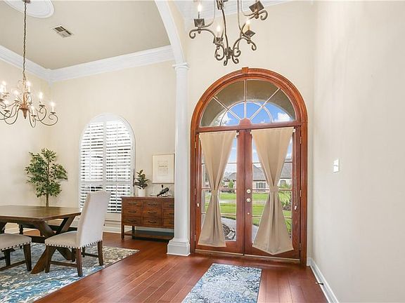 Come enjoy your own private oasis in prime Mandeville school district location. Located in The Reserve and backing up to a stocked pond and greenspace, this property has it all: 4 bedrooms + office/5th bedroom, 3 baths, huge open floor plan, spacious gourmet kitchen w/ 2 islands, massive laundry room w/ tons of storage & countertops for folding, 14' ceilings in living, dining & primary, so much natural light from oversized windows throughout, primary suite w/ separate vanity/dressing area, walk-in closets & large tub & walk-in shower. Pool system, sprinkler system, outdoor lighting & landscaping have all been updated. Outdoor/indoor speaker system w/ bluetooth capability. Covered patio & screened-in porch look out over beautiful pool & spa. Gated subdivision w/ community pool & Tammany Trace access!
