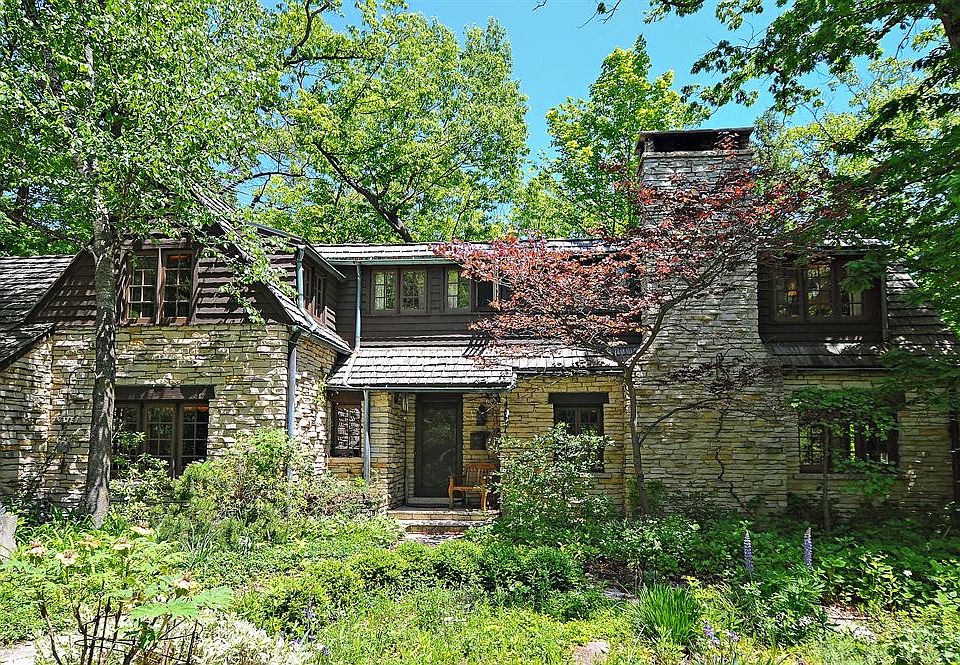 Very private, natural setting. John Van Bergen designed home with ravines on three sides and additional land in which to expand the current home. Home is of the Prairie Style, offering many unique built-ins; bay windows w/seating in the living and dining rooms, exposed beamed ceilings, sun room on main and porch second level, fourth bedroom / office on main, huge walk in bonus room over the garage. Great opportunity!