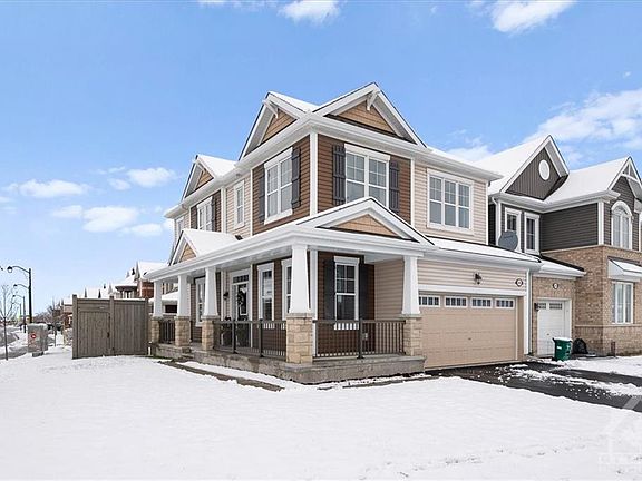 Welcome to 266 Des Soldats-Riendeau Street, in the popular community of Half Moon Bay in Barrhaven. Enjoy nearby amenities such as parks, playgrounds, walking paths & connect with nature at the Jock River. Nearby rec centres, eat at one of the amazing local restaurants or get all of your shopping done at the local stores. The Marigold Corner floor plan offers a welcoming wraparound front porch leading the foyer & handy mudrm with access to the 2 car garage. The open concept design features a contemporary kitchen with upgraded S/S appliances, quartz countertops & a breakfast bar. The dining area is filled with light from the over-sized windows. The spacious great rm with gas f/p welcomes family & guests whether entertaining or enjoying a night in. The focal point of the 2nd level is surely the master retreat with ensuite bath & walk-in closet. The main bathrm & 3 other well appointed bedrms complete this level. Book your showing today on this beautiful home, before it's Too Late®!