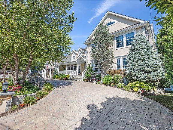 Welcome to your year-round beach house! Featured in House Magazine, this truly majestic 4,844 sq ft Custom Built French Colonial-style home is situated on 140’ of private sandy beach that overlooks the Great South Bay. Stunning sunrises and sunsets with views of Fire Island Lighthouse in the distance. A 100’ pier and 16,000 pound lift accommodates most any size boat. Bring your catch home and chat with your guests while you cook on the 42” stainless-steel Lynx grill and full outdoor kitchen under a pergola. Everything for entertaining is here-refrigerator, ice maker, industrial stainless sink and faucet and two outdoor bars, huge multi-level deck, gas fire pit and outdoor TV entertainment center. An ingound ,heated saltwater gunite swimming pool with three waterfalls overspills from an irrigated flower garden. Enter inside to the custom gourmet kitchen with solid cherry cabinetry by Rutt with a sub-zero refrigerator, Wolf stove and oven, Thermadore convection oven, microwave and warming tray. The kitchen center Island is just off the main kitchen area with a copper tray ceiling. The formal living room and dining rooms feature coffered ceilings and wrap around a massive two-sided gas fireplace. The dining room includes custom refrigerated wine closets and a service area with a hammered copper wet bar and a beverage center and ice maker. The Great Room has a vaulted ceiling surrounded by windows, and topped outside with a copper-roofed cupola and weathervane. Continue entertaining indoors in the Billiard Room with a Brunswick pool table and direct access to the backyard fire pit area. Overnight guests have their own bedroom and a full bath and laundry room. A private office is near the stained-glass front door with matching sidelights and transom. Head upstairs to the full Library with one of two huge balconies that overlook the bay. The Primary bedroom suite includes a sitting room with a small kitchen to prepare your morning coffee and it’s own laundry room. Glass pocket-doors lead to the huge primary bedroom featuring vaulted ceilings, its own balcony, and a walk-in ‘his & hers’ closet. The primary bathroom is designed as a spa with a two person double steam shower, air tub and water closet. Three full additional bedrooms and a bathroom are on the second floor. The curved bridal staircase takes you to the third floor to a complete gym with multiple exercise machines, and an additional office overlooking the bay. Brazilian Cherry Hardwood is featured throughout the entire house. Last, but not least is the front of this regal home with a bluestone porch and porch swing, a semi-circular driveway with pavers and lighted pillars with room for five cars in addition to the two-car heated garage with Mahogany Garage Doors. Fully landscaped with LED landscape lighting around the entire property. Four- zone heat, five-zone A/C, five-zone Sonos Sound System, security system with cameras and full house automation. Attic and extensive storage areas. This house was elevated by Historical House Lifters in 2013.