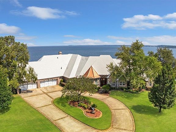 Luxury Lake Living at its Finest! This property listed is arguably one of the most desired properties on Toledo Bend Lake. This exquisite custom home sits on 2.646 acres (not including the SRA leaseback) that is designed so that you have 3 sides of waterfrontage creating incredible panoramic views. The home itself has 7,756sf under roof, with 4,966sf heated and cooled. The 4 BR, 3.5 bath, 4 car garage home has been masterfully crafted to include 2x6 exterior walls, foam insulation throughout, high multi-tray ceilings which include beautifully crafted wood and metal inlays. The floors are cypress wood, travertine, and tile, with elaborate moldings in every room. Real stone on interior walls, breakfast bar facings, and all 3 fireplaces truly adds to the lake house feel. Almost every room in the house has a view of the lake, which includes both sunrises and sunsets depending on the room. The boat house spans 1,656sf with 2 lifts and a tackle storage room. All this and so much more.