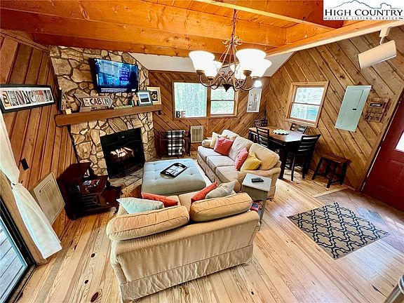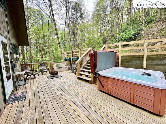 Great Mountain Retreat! This 3BR/2.5BA home is located in the Mill Ridge. This home offers an abundance of peace and privacy as it is nestled in the trees. Convenient and central to everything…Boone, Banner Elk and Blowing Rock! Multiple spacious decks extend the living space! Enjoy the hot tub and fire pit on the front deck. Home offers new wood flooring, new kitchen, bathroom updates and nicely furnished! Deck at entrance and with hot tub was removed and replaced recently. Walk into an open floor plan with the kitchen, dining area and living room. On cold evenings enjoy the fireplace! Extend the living area on the covered back deck. This level also includes a loft ( 14x10 of additional square footage not counted in overall square footage due to angle of ceiling). Lower level offers 2 bedrooms and a full bathroom. Lowest level is the primary bedroom and en suite with heated floors, back deck and laundry. Home is located in a community with a seasonal pool, ponds, river access, tennis courts and hiking trails! Great vacation home, permanent residence or investment property! Get ready to move in as home is being sold furnished and stocked with a few exceptions ( living room sofa and loveseat and a few wall hangings). Extra lot included for extra privacy.