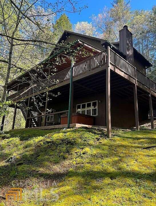 Log Cabin located 8 miles outside of Ellijay on a private road. Home is on 4 acres. Enjoy the stream, small lake, and outside firepit. Two decks offer peaceful views of the meadow below. Home has two bedrooms but two other rooms in the lower level are set up as bedrooms. You can access the lower level from the driveway as well as from inside and stairs from the upper deck. Owner will lease with all furnishings. Small to medium dogs will be considered. Appointment only. Gates Club Road is a private road. Copyright Georgia MLS. All rights reserved. Information is deemed reliable but not guaranteed.