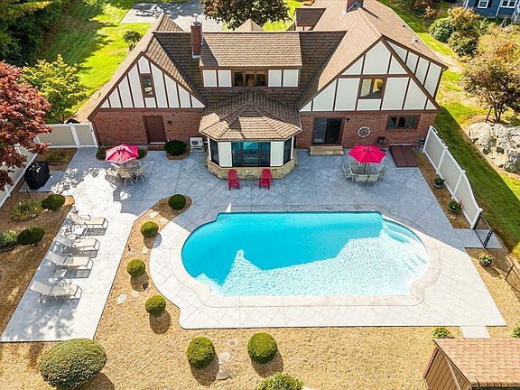 Welcome to this stunning Tudor home, set on Shrewsbury’s desirable northside. Offering 3k+ of elegant living space, this unique home sits on an oversized lot with a spacious, level yard perfect for outdoor living. Step into your private oasis, featuring a serene patio, sparkling, heated pool, and a heated, air-conditioned solarium that brings the outdoors in year-round. Inside, the main level is designed to impress with its sprawling layout, solid construction, and a full bathroom and bedroom. Warm up by one of the home’s two propane insert fireplaces, and enjoy the charm of a home built with warm-toned millwork. The partially finished LL provides extra living space, while walk-in attic storage on the second floor adds practicality. The primary suite is truly exceptional, featuring an oversized jacuzzi tub, stand up shower, and separate bonus room. This home offers the perfect blend of unique design and modern comfort, all in a peaceful, sought-after location