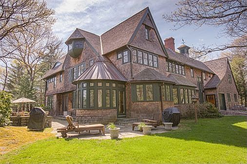 Private hill top setting.This majestically sited shingle home was designed by a well known and highly acclaimed architect.A stunning ex. of grace, charm and functionality with a feel and look of a well established Nantucket home.This welcoming prop. is enhanced with a receiving court, stone walls and mature landscaping.Mag.millwork and detail are evident throughout the 4 finished levels,6 ensuite bedrooms, fabulous finished attic with 2nd home office, lower lev with wine cellar and media room