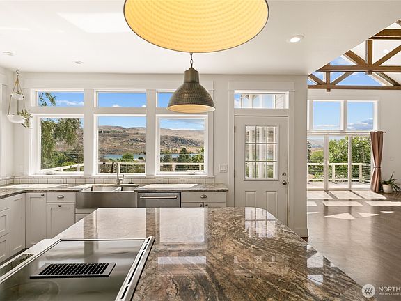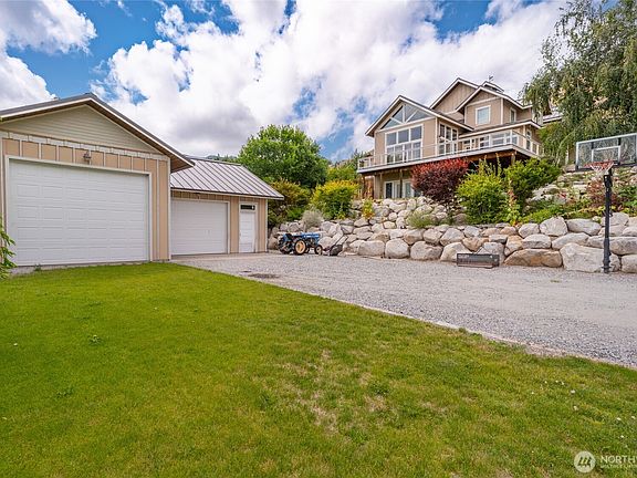 Stunning 4-bed, 4-bath home in Pateros with natural light pouring through expansive windows. Enjoy lake, mountain & sunset views from the ceiling-high living room windows or large entertaining deck. Chef’s kitchen boasts granite counters, island & updated appliances. Features include hardwood floors, daylight basement w/ bath & rec room, very large detached 2-bay shop ideal for RV/boat storage or workspace, fenced dog run, root cellar, mature landscaping, in-ground sprinklers, irrigation, garden boxes & 6 covered parking spots. A perfect mix of comfort, function & scenery.