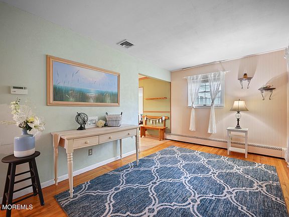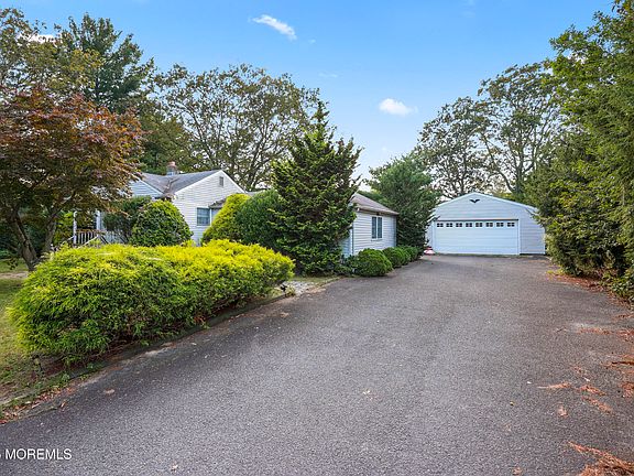 Welcome to 266 Lake Shore Dr, where this 3 bd/ 2 full bth expanded ranch nestled on 120 x 100 lot in the heart of Lake Riviera neighborhood of Brick is now available. Accompanied by a 2-car detached garage with a wood burning stove and an oversized shed that once hosted a lively tiki bar that the owner would recommend one should revive. Open layout from kitchen to living room (hardwood floors under carpeting) with sliders that lead to your spacious backyard. Bedrooms are ample sized with one bedroom behind the french doors is an en-suite with a full bathroom and cedar wood walk-in closet. Redress this sweet home that holds plenty of charm such as the pantry door, pillars, and more. Located in a welcoming community near Lake Rivera, close to the Garden State Parkway, and all that a Jersey Shore town, such as Brick, has to offer. If you picture yourself living here, schedule today to make this home, yours.