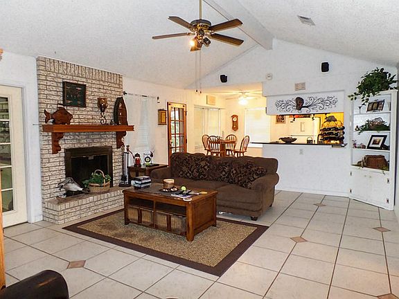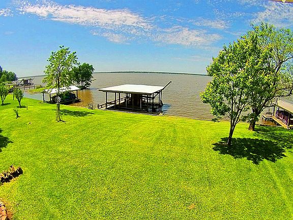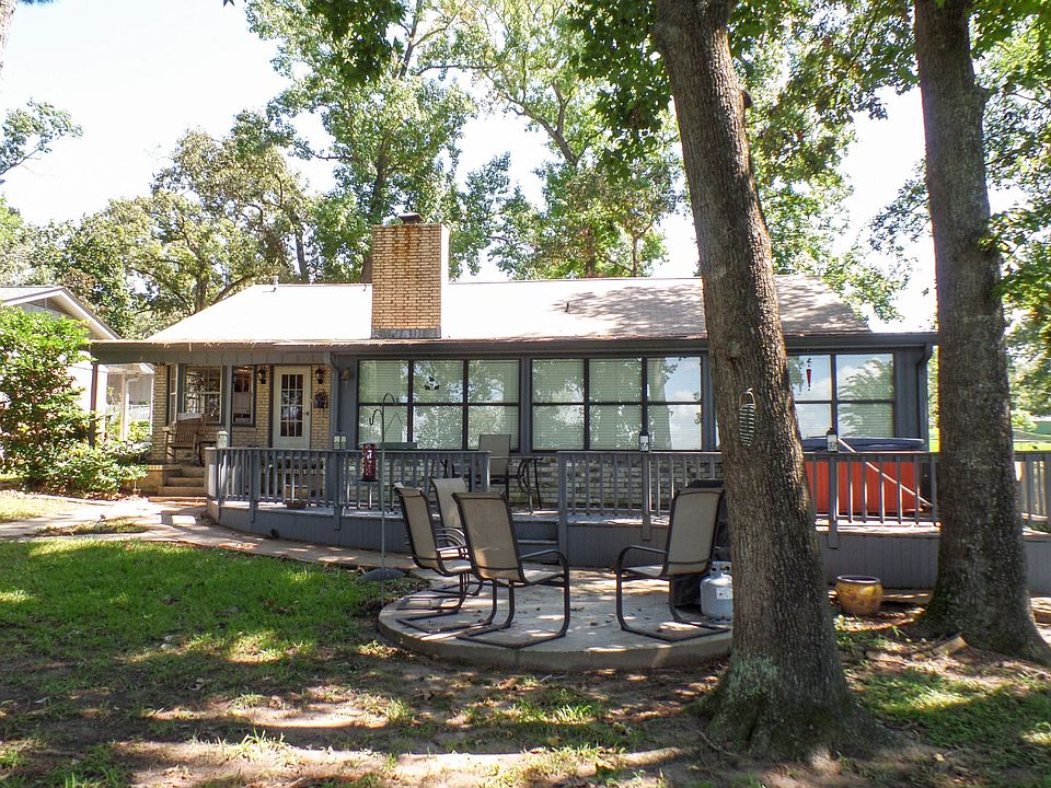 Waterfront on Lake Livingston. 3 Br, 2 Bath, 1 story home w/ attached garage. Situated on two over-sized bulkhead lots. Lovely landscaping w/tall shade trees, sprinkler system, lakeside deck w/6 person spa, gazebo, boat house w/lift. Spacious backyard, & a guest house with a wet bar & half bath--a great area for entertaining & fun space for children. The main house has ceramic tile throughout, WBFP, glass sunroom facing the lake. Includes an Old Republic Protection Plan.