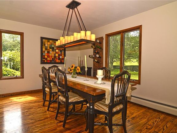 Once in a lifetime opportunity to own a spacious Chapman home on your own private peninsula! 5 bedroom, 2.5 bath Tully home boasts 971' of lakefront on almost 4 acres of rolling hills. Two story foyer opens into the beautiful formal dining room. Down the hall is the large eat-in kitchen with one of four sliders to the oversized deck! Living room has a woodburning fireplace, while the family room is conveniently located to the huge master suite with full bath and separate vanity! Upstairs are 4 large bedrooms and a full bath with dual vanity, tub, and second stall shower. 2.5 car attached garage, additional storage in the newly built 2 car detached garage with huge loft. Backyard is a private oasis with space to entertain, as well as a second deck overlooking the dock to Crooked Lake.