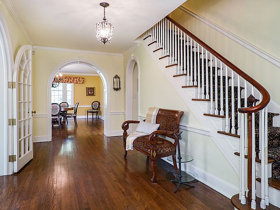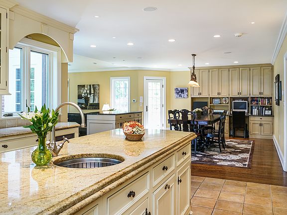 Classic beauty earmarks this elegant brick Colonial sited gracefully on deep set lawn. Statuesque trees and flowering foliage are the backdrop. A beautiful brick walkway leads to the entrance. This special home has been custom renovated and expanded. Gracious entry foyer leads to staircase framed with architecturally rich arches leading to the expansive sun filled formal Living room/ fireplace and French doors to terrace, as well as the gracious sized formal dining room. Gourmet chefs dine-in kitchen boasts custom cabinetry/Viking stove/sub zero refrigerator/2 dishwashers/island/ wine fridge, plus desk area, large breakfast area, and family room with vaulted ceiling and fireplace. Truly the daily "heart of the home". Luxe master suite has stunning spa bath, sitting area/fireplace, and large walk-in closet. Bedrooms are all spacious. Lower level is finished and has separate entrance bedroom, full bath, fitted mud room, and wine room. Don't miss this one!