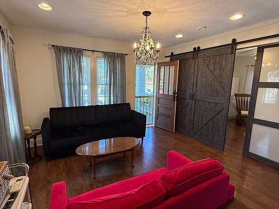 ''Cottage on Main'', except to the perfect little dwelling that is immaculately designed. There are so many special finishes there's not enough room to describe. The great room has smart use of space featuring a living area, dining area and kitchen. Upscale quartz countertop and butcher block countertops in the kitchen. Custom backsplash. You'll love the light fixtures throughout. The barn doors provide privacy leading into the bedrooms suite. There is a dressing area connected to the luxurious bathroom with a soaking tub, TV for lounging in the tub plus a separate custom tile shower. The tile floor in the bathroom is an eye catcher. There is a walk-in closet with stack washer/dryer. Outside you'll be surprised by the large patio and yard area with a privacy fence. Beyond the fence the backyard continues with a detached metal garage plus the bonus of of separate greenhouse for a delightful working space. The big backyard continues with plenty of room for a fire pit or gardening. Additionally there is a second garage that is a drive thru to the backyard. This is a must for someone looking for a move-in ready space that is upscale in design yet SO AFFORDABLE. Located near city pool.