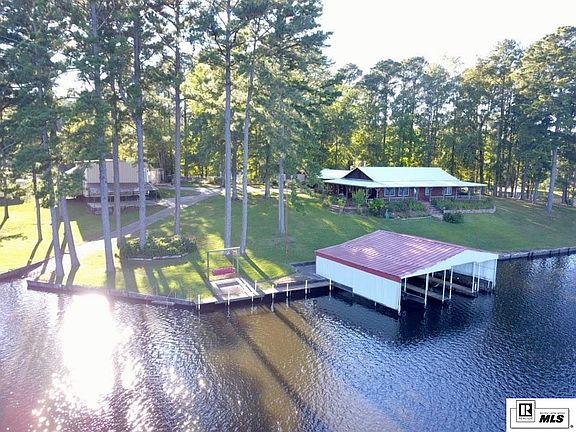 Beautiful, one of a kind property on Lake Claiborne sitting on a 3 acre lot, with approximately 900 feet of water frontage near Bear Creek. This 3 bedroom, 3 bath home has a wrap around porch equipped with a bug mister & offers beautiful views of the lake & the whole property. Inside is a large open living area & kitchen & updated bathrooms, featuring walk-in showers & bathtubs. The property includes a 4 stall boathouse with 2 electric lifts, a guest house with 1 bedroom & bathroom, large workshop, in ground sprinkler system & solar panels. Solar panels power the entire property with enough left to sell electricity back to Claiborne Electric. The large shop has a bay door that could be used as is or converted to living quarters. Don't miss your chance to own a wonderful property on Lake Claiborne! Call a Realtor today to schedule a showing! Information provided is deemed reliable, but not guaranteed.