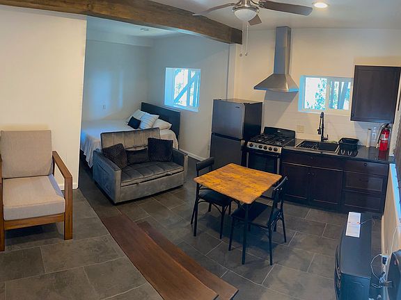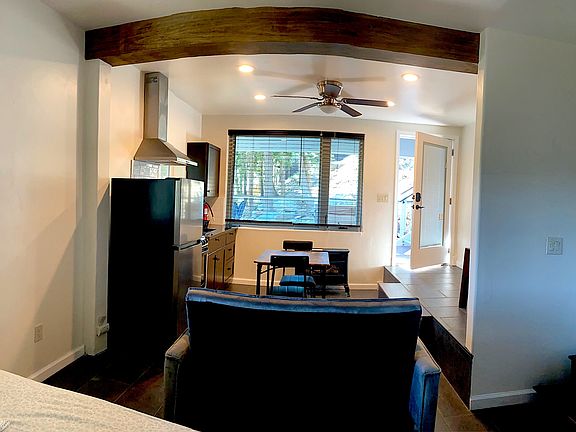 Newly remodeled, immaculate studio unit with natural gas heating fireplace. Furnishings included. Outdoor share spa in common area. Walking distance to year fated, round heated outdoor pool & spa (completes Dec. 2025). Rent includes gas/electric/internet/keyless entry.