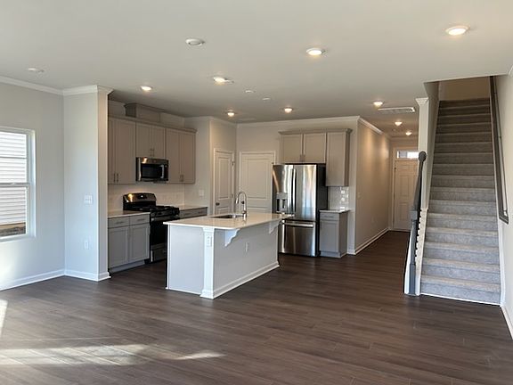 Welcome home to a better than new townhome in Smithfield. Franklin Towns community is conveniently located minutes from the UNC hospitals and the Amazon Distribution Center in Smithfield. The community features sidewalks, walking trails, dog park, playground, and guest parking. This end unit townhome showcases open concept living with quartz kitchen counters, stainless steel appliances and a gas range! Abundant natural light pours into the spacious living room which offers ample space for relaxation and entertainment. Upstairs there are 2 secondary bedrooms one of which has a walk-in closet! The generous size primary suite is designed for comfort and highlights a beautiful tray ceiling, a double vanity, tile shower with seat and an oversized walk-in closet. Parking is a breeze with the attached 1 car garage and an extended driveway! Custom lighting, ceiling fans and blinds throughout the home will be installed, so this home is ready for you to move right in! Additional amenities include cable readiness, high-speed internet access, blinds throughout, ceiling fans in living room & primary suite, and in-unit washer/dryer for laundry needs.