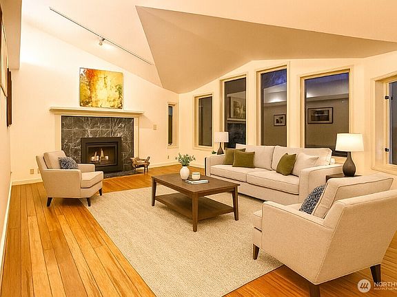 $9,000 Seller Credit with Full Price Offer! Enjoy stunning water views and serene coastal living in the sought-after Shelter Bay community. This beautifully designed home features vaulted ceilings, large windows, and hardwood floors that fill the space with natural light. The spacious kitchen offers custom cabinetry, pull-out storage, and open dining areas that lead to extended decks with peaceful territorial views. The layout includes a relaxing primary suite with deck access and a fully equipped lower-level guest suite with private entry, kitchen, and cozy fireplace. Community amenities—pool, marina, parks, and trails. Just minutes from downtown shops, dining, and the waterfront. Photos have been virtually staged to showcase potential.