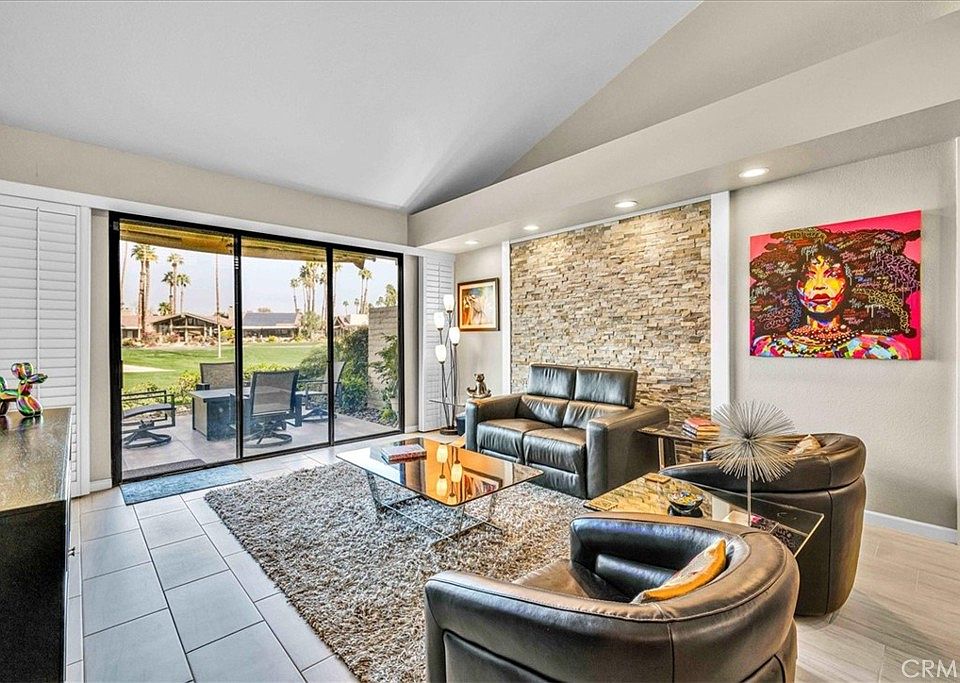 Welcome to The Lakes Country Club! This truly move in ready, 2 Bedroom, 2 Bath, approximately 1,368 sq ft Cheyenne floor plan checks all the boxes - it is a gem! Enter the gated courtyard to find a professionally landscaped retreat, complete with custom lighting and beautiful tiles. You will be captivated by the refined, contemporary finishes and soft, neutral tones which provide a soothing, welcoming esthetic to this home. With vaulted ceilings, an open floorplan and porcelain tile throughout, this home feels spacious and roomy. The main attraction is the stunning views of the lush golf course, a striking water feature and peek-a boo mountains. You can relish in all of this from the handsomely tiled patio – a perfect place for relaxing or entertaining! The kitchen is attractively finished with custom Shaker cabinets, Kitchen Aid appliances and granite countertops. Both bathrooms are nicely updated with attractive showers and vanities. An elegant stone wall accents in the main living area add, texture and interest to the area. Don’t miss the opportunity to make this stunning and sophisticated home your new Desert retreat! The Lakes Country Club offers a robust schedule of social and fitness activities at the exquisite Clubhouse and Health and Wellness Center. Enjoy Tennis, Pickleball or Pop Tennis, Bocce or the 44 community pools and spas. For golfers, the Club offers membership options for the 27 hole championship golf course. Don’t miss this rare opportunity – schedule your private tour today and make your dream home a reality!